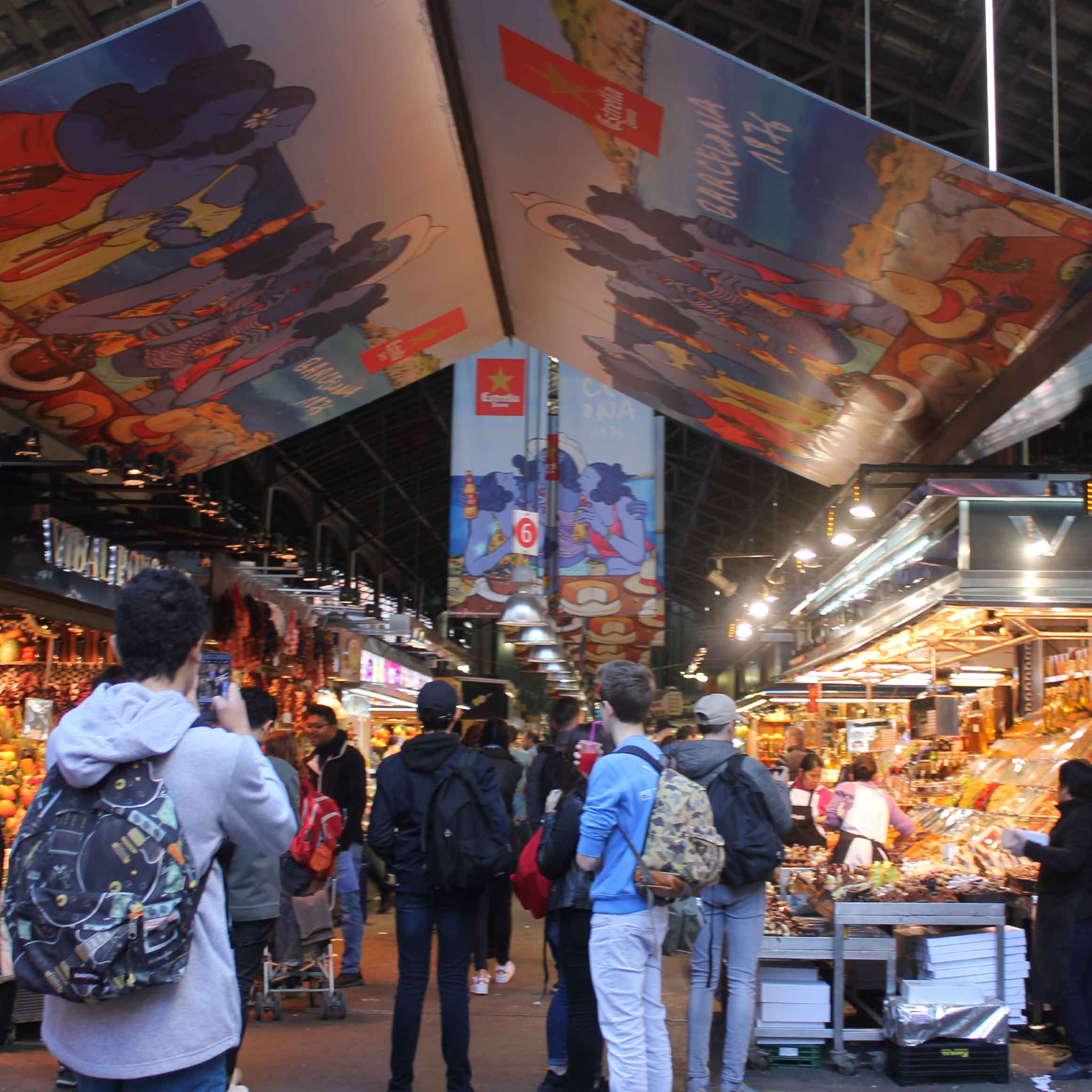 Having become highly excitable from passing the Estrella factory on the taxi journey to the hotel, we rapidly checked-in so that we could head straight back out to explore Barcelona for the first time and feed our curious appetites with some local tapas and obligatory ’holiday’ drinks.
