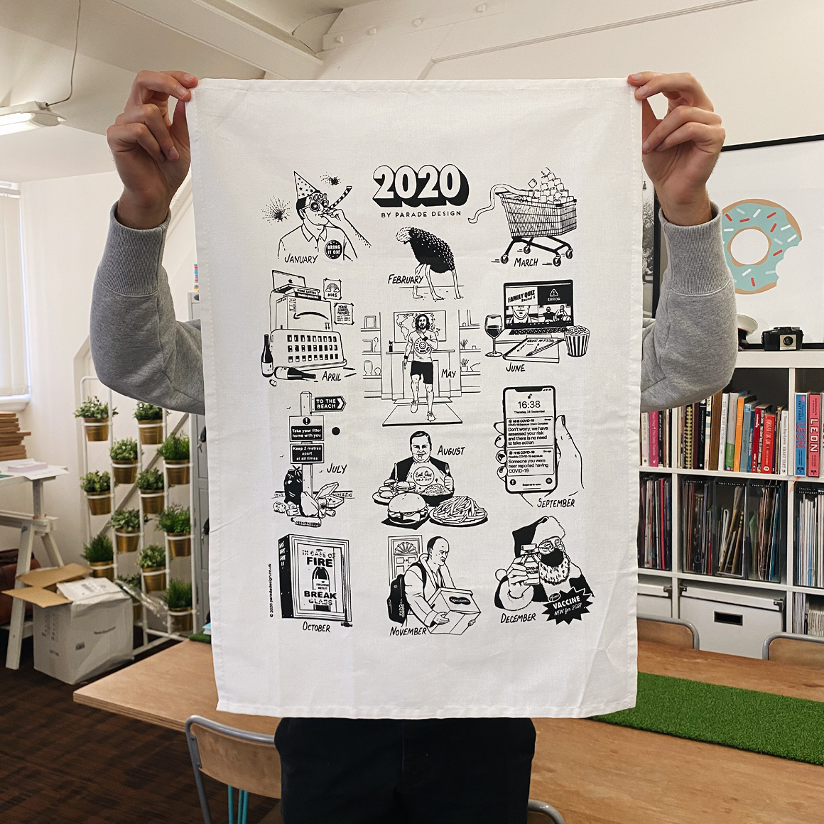 As much as we want to forget 2020, such a huge life-changing year couldn’t be ignored. So for this years Parade Christmas mailer we created a 'Souvenir of a Dreadful Year' - A limited edition novel-tea towel, featuring 12 month-by-month illustrations by our in-house designer and illustrator extraordinaire James Neilson.