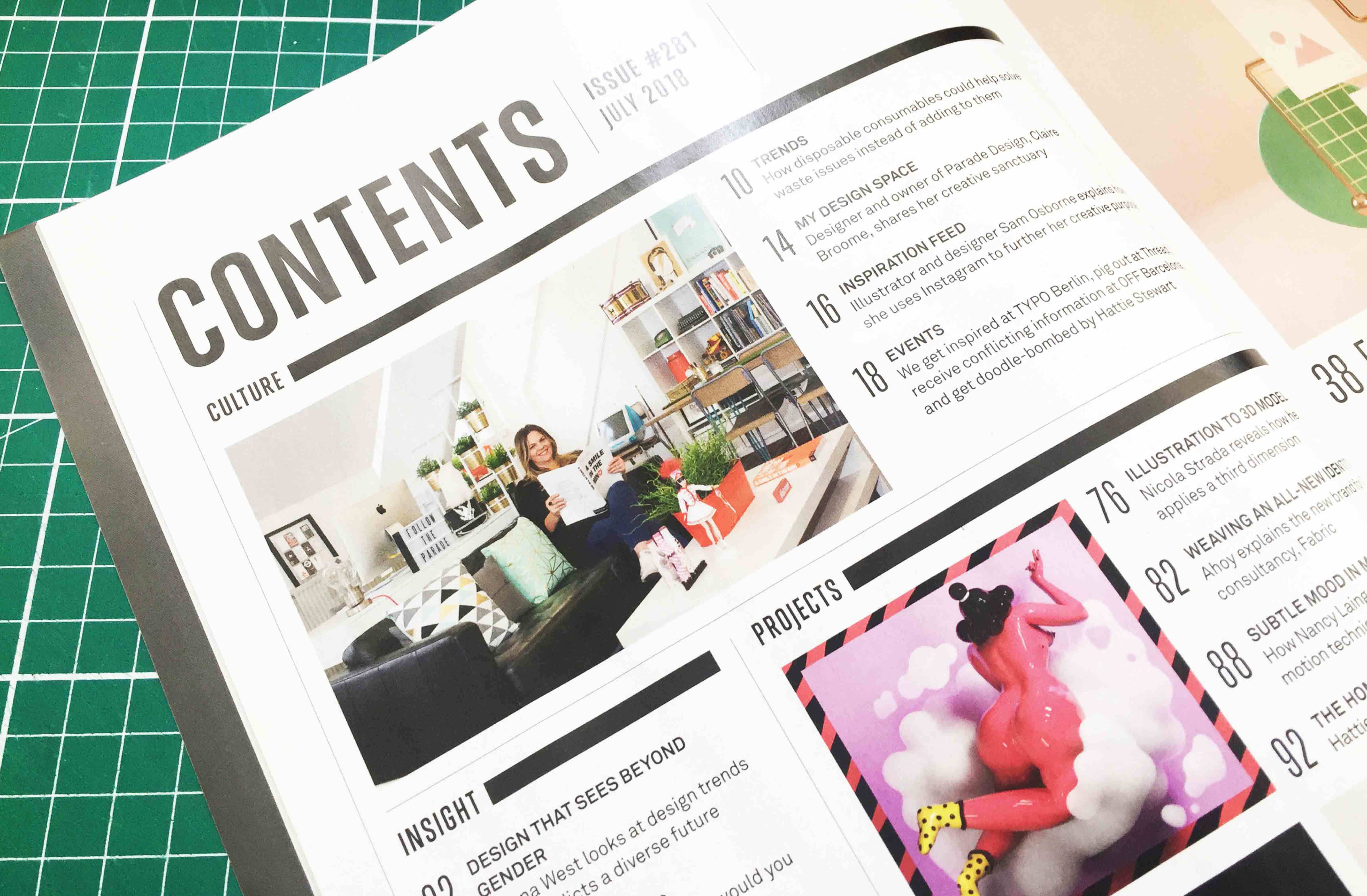 For the creative designers amongst us, Computer Arts Magazine is a publication that we’re all familiar with. For those who’ve never heard of it, (we wont judge you, promise) you’ve probably skimmed past it on the shelves of WHSmith whilst reaching for Hello! or Angler’s weekly. It’s a national publication devoted to the graphic arts and this month (Issue #281 July 2018) Parade’s very own Claire features in the Culture feature: My Design Space.