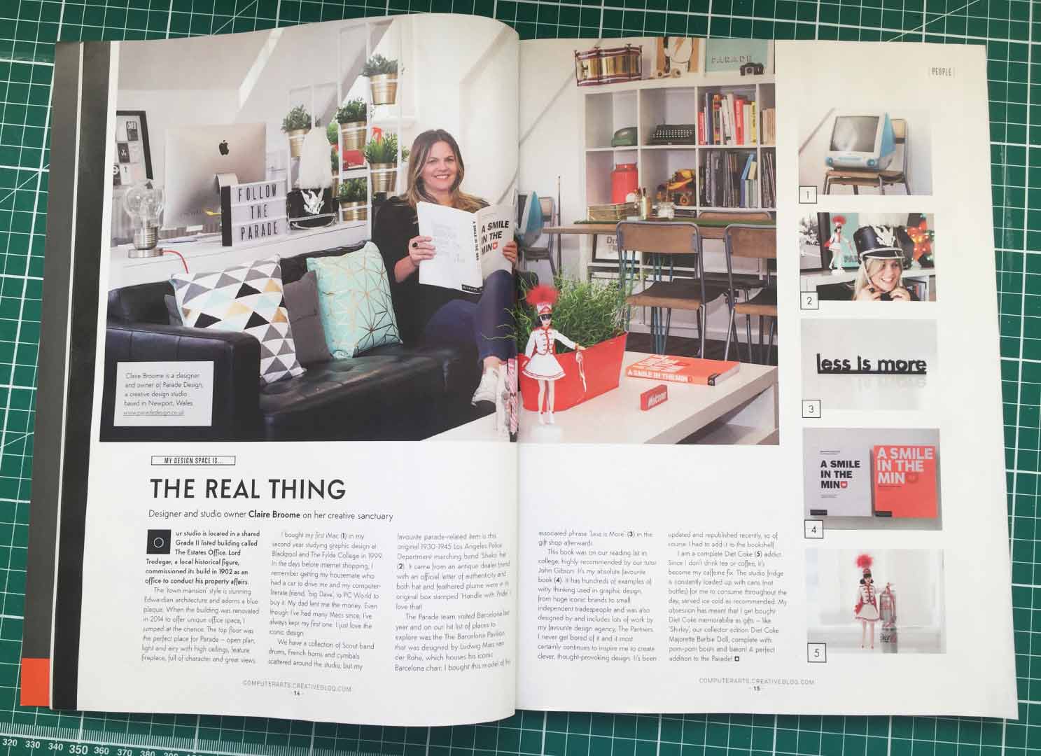 The team at Computer Arts HQ were looking for beautiful and inspiring workspaces that could be featured in the mag, and they came across the Parade Studio on Twitter and thought it would be a good fit. How very flattering! The brief was to pick 5 items of interest of your working space and explain their significance. Hmm, this challenge was no mean feat I assure you! But like a scene from The X-Factor, the short-list was finally chosen, and article and images published. If you don't subscribe (shame on you), you can read the article below: