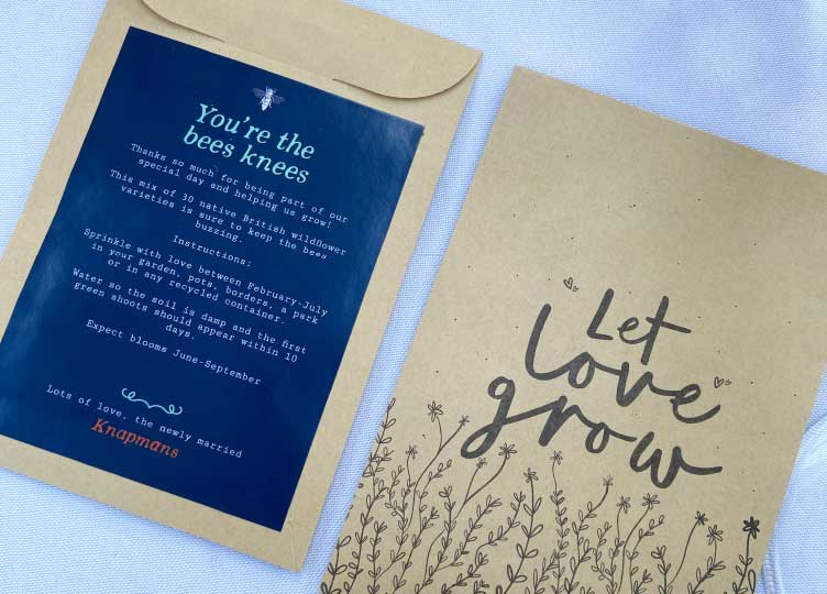 Lauren’s creative talents and graphic skills were on full display having designed the beautiful order of service, table plan, name settings and cute seed pouches for wedding favours. All ‘on-brand’ of course! Great work Lauren. (We wouldn't expect anything less!)