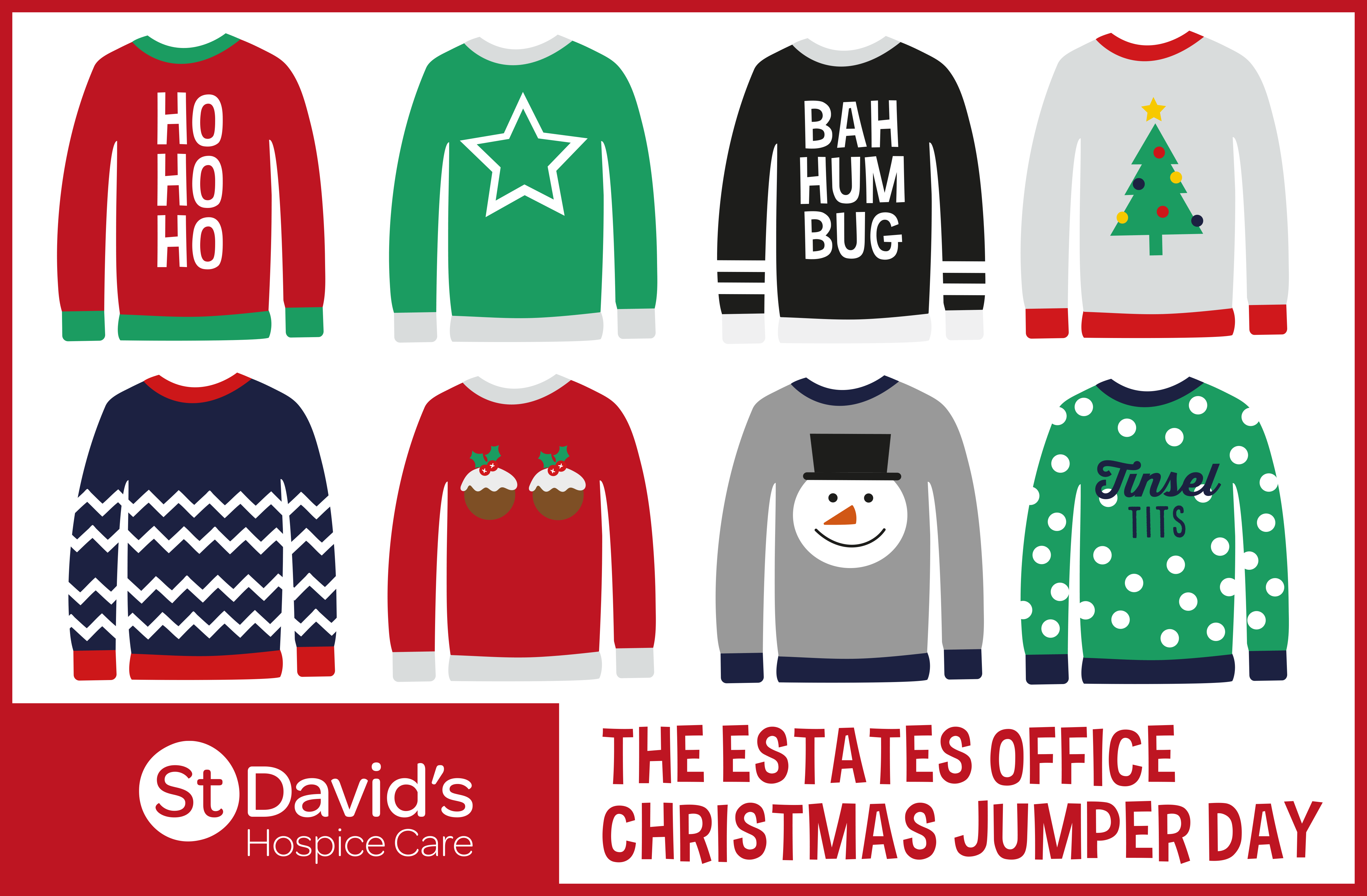 If you would like to get involved with organising a Christmas Jolly Jumper day in your place of work or to join the many events that St. David’s Hospice organise, get in touch with them today.