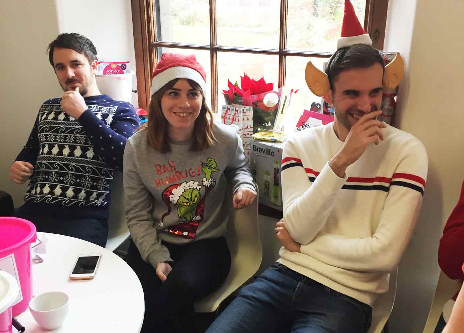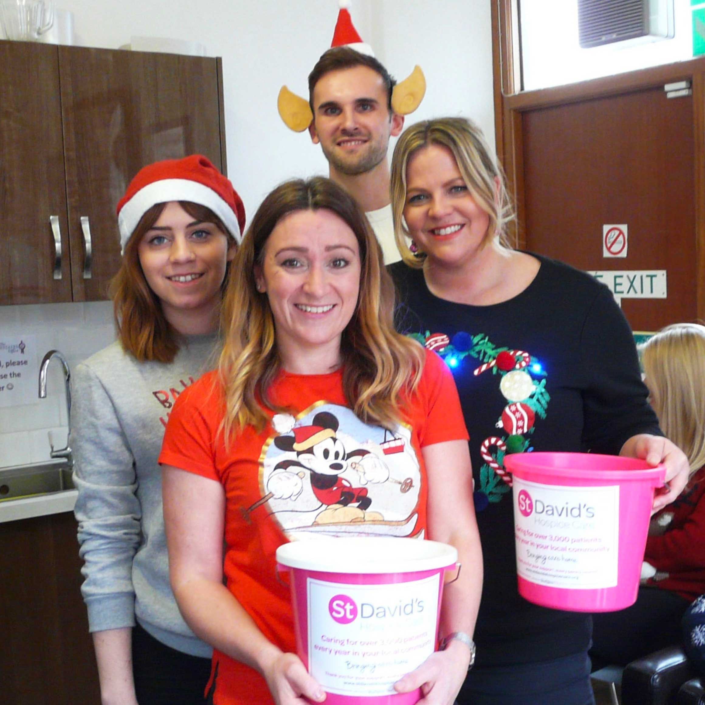 It’s Christmas time once again and with it comes indulgence, parties and over-spending. Here at The Estates Office it also means it’s time for our annual Jolly Jumper day and to do our bit for charity. Organised by the Parade Design team for the past 3 years, we ask all the lovely tenants of the building for a raffle prize donation per company and try and sell as many raffle tickets as we can to raise money for St. David’s Hospice Care.