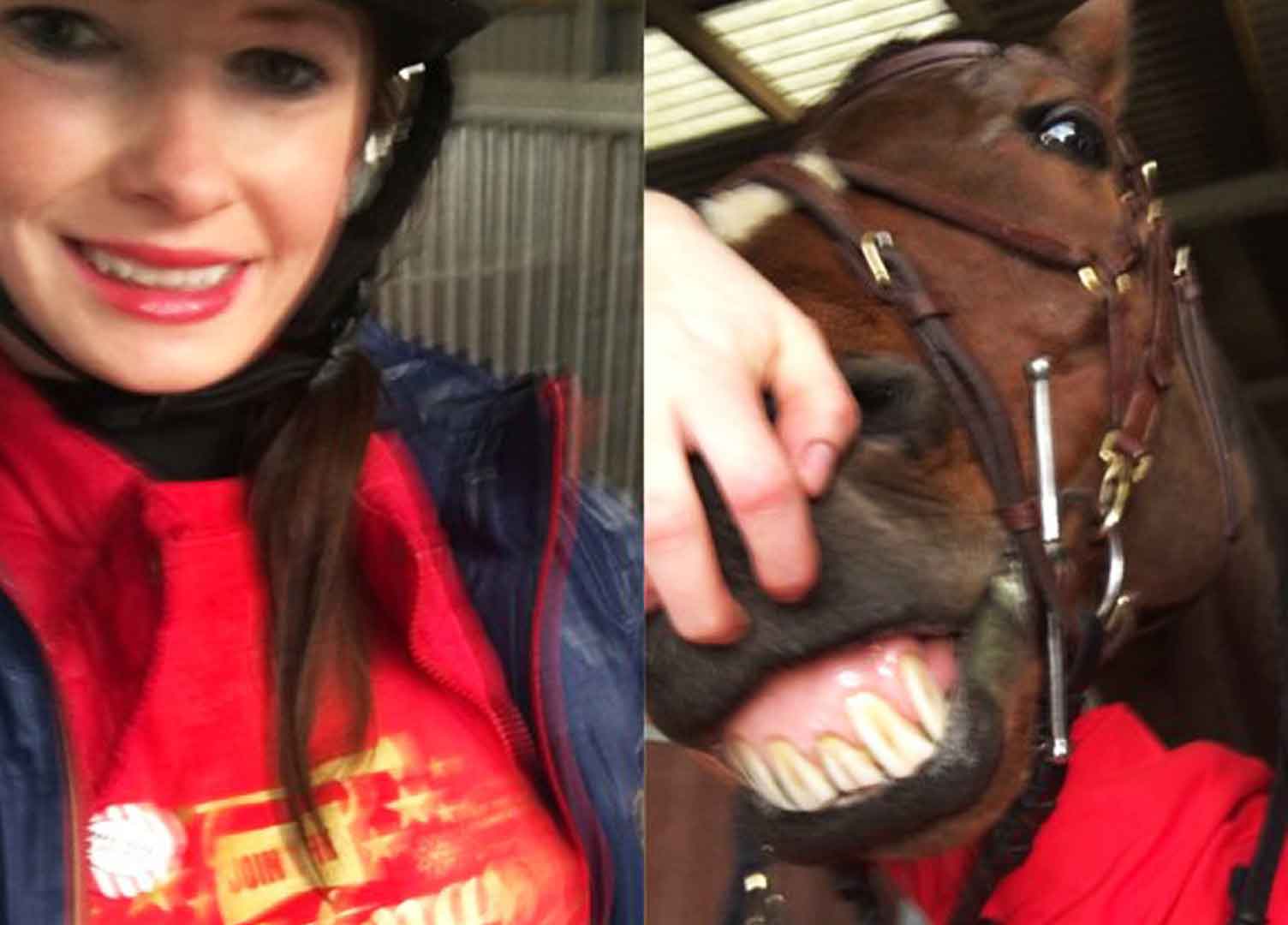 We loved the horsey smile and blurriness of the selfie from Fiona of Hutchings and Thomas as she trotted and tweeted simultaneously. Can you get fined for that?