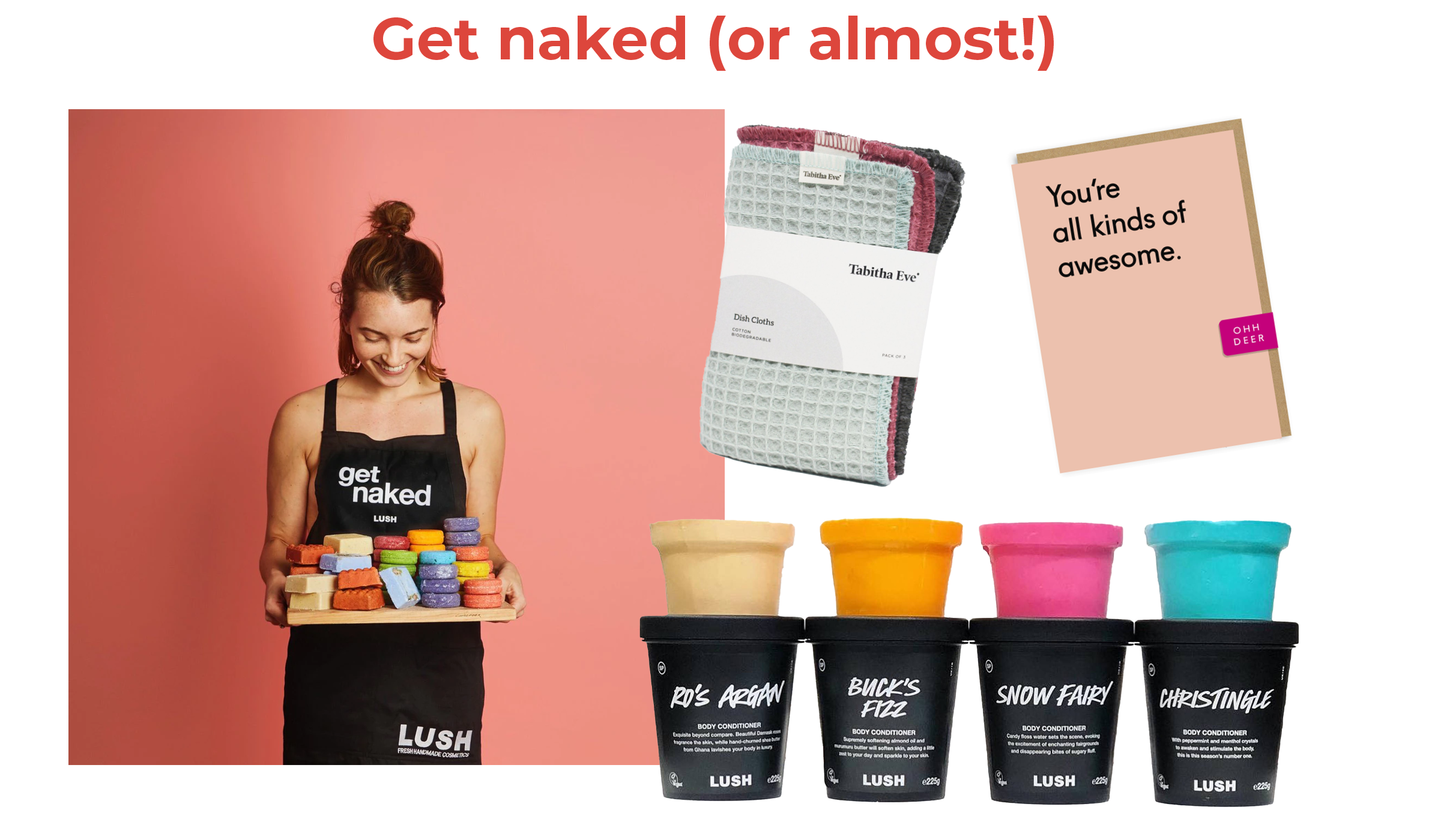 We love Lush’s new naked ranges, which replicate bottle shapes and have zero packaging.