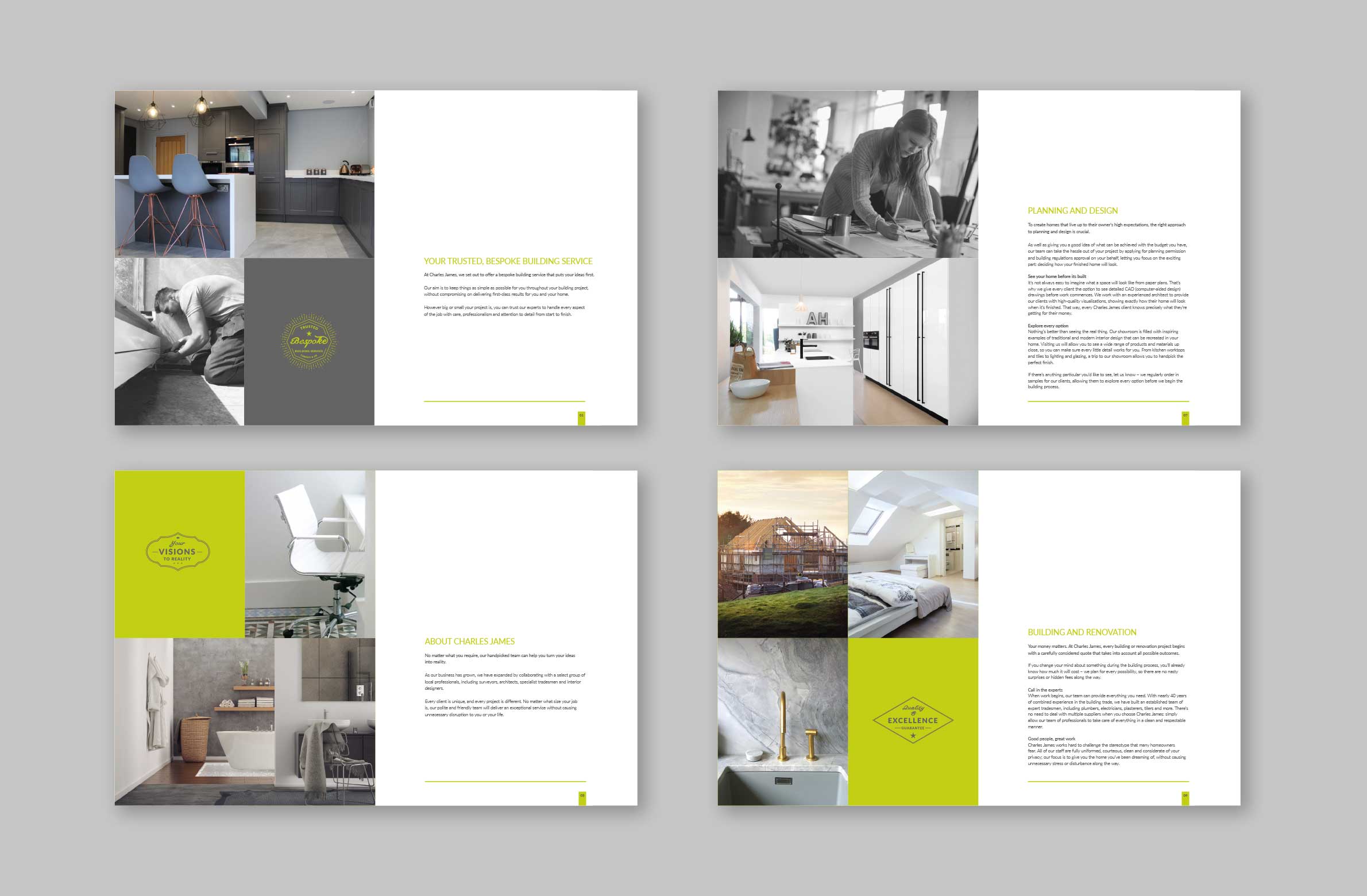 We worked on extending Charles James Developments' existing brand by creating bespoke emblems, a premium brochure, stationery and a brand-new website. We commissioned a copywriter to make sure the brochure copy expressed the company's ethos and covered all their services from the design process to interior design.