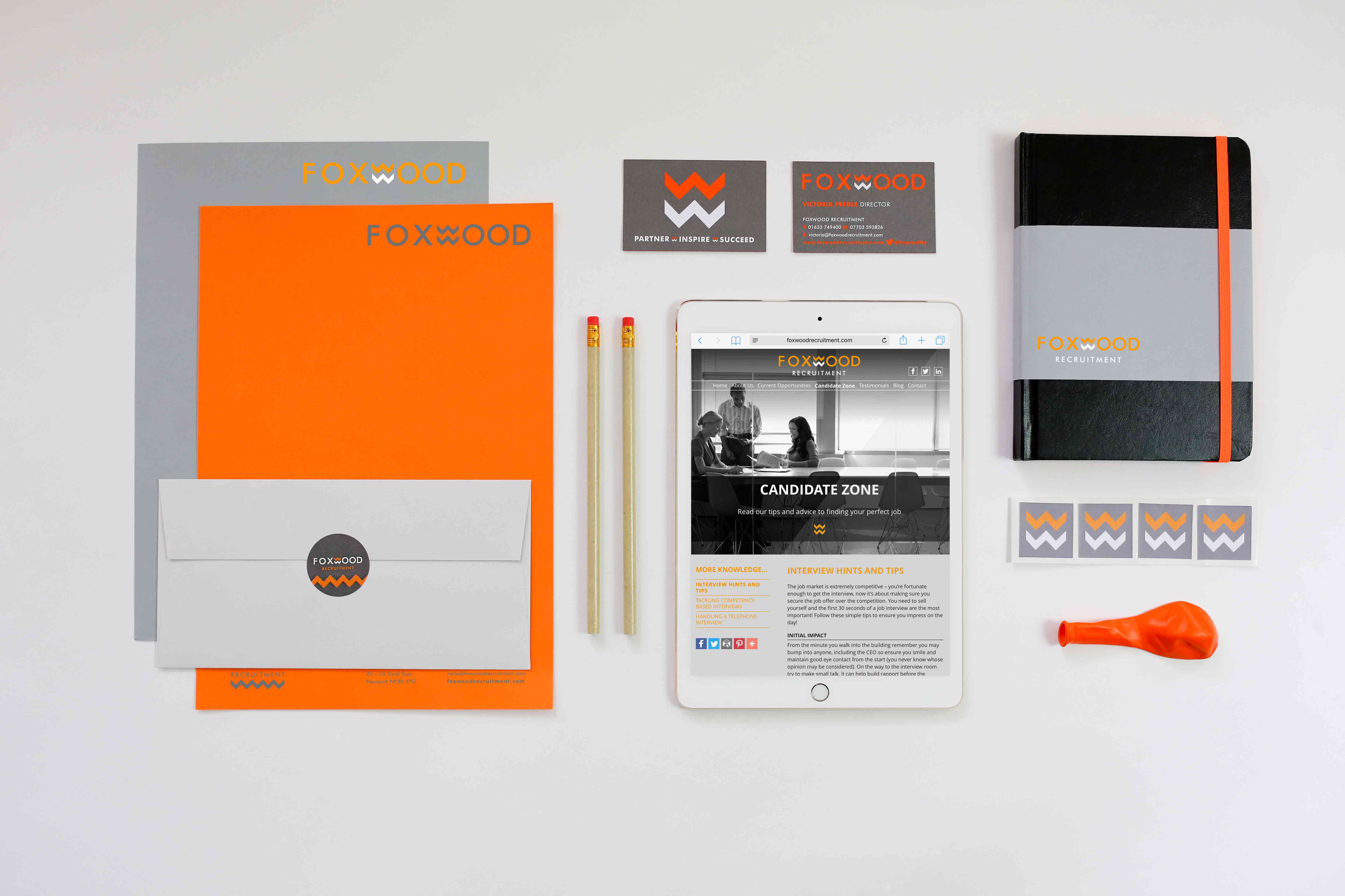Business partners Victoria and Jonathan needed a brand for their new business venture, Foxwood Recruitment. Having already worked for over 10 years in recruitment and sales, the duo wanted to branch away from the traditional, corporate look of so many other agencies before them and opt for a more contemporary and inspirational approach. We were asked to incorporate the words ‘Partner; inspire; succeed’ into the brand to set the tone of Foxwood’s ethos.