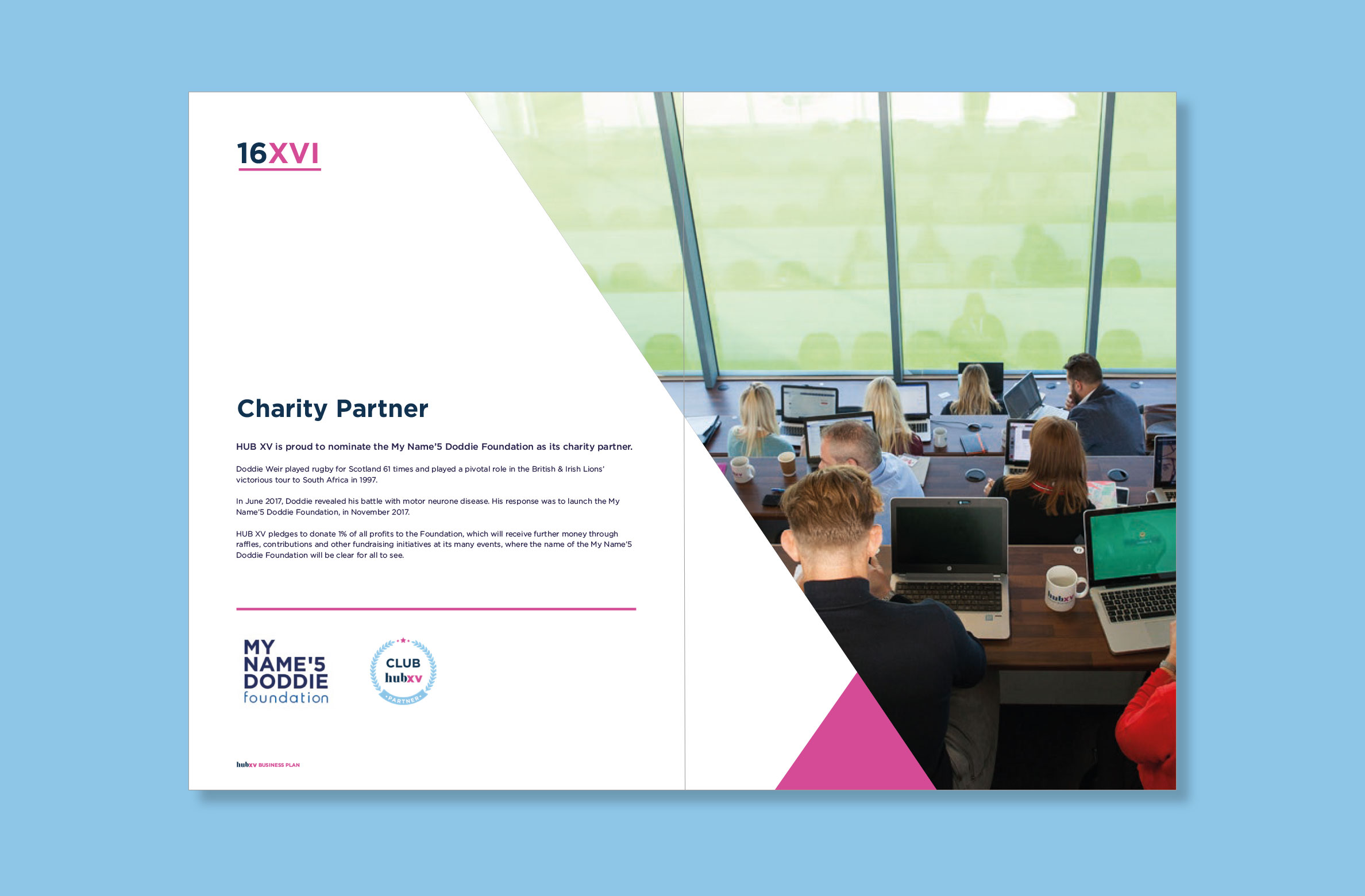 Hub XV partners with sports venues to create unique community workspace environments by utilising unused space and creating networking opportunities through events and a business community. Hub members enjoy a professional working environment alongside the opportunity to make high-calibre connections. The co-working concept is growing rapidly across the globe, mostly in main cities and business hubs. Hub XV differentiates itself by providing atmospheric venues where the emphasis is on collaboration through community, schedule of events, and regular seminars.
