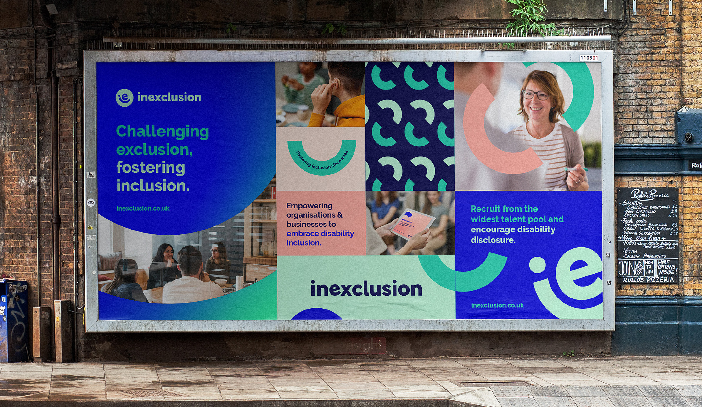 Accessibility was a key focus throughout the development of Inexclusion’s brand. We ensured all colour combinations met WCAG AAA standards, guaranteeing maximum readability for all users. In addition, we carefully selected fonts with distinctive characters and minimal mirroring to improve legibility, particularly for those with visual impairments or dyslexia. The commitment to accessibility is reflected in every aspect of the brand, ensuring it is as inclusive as the company’s mission.