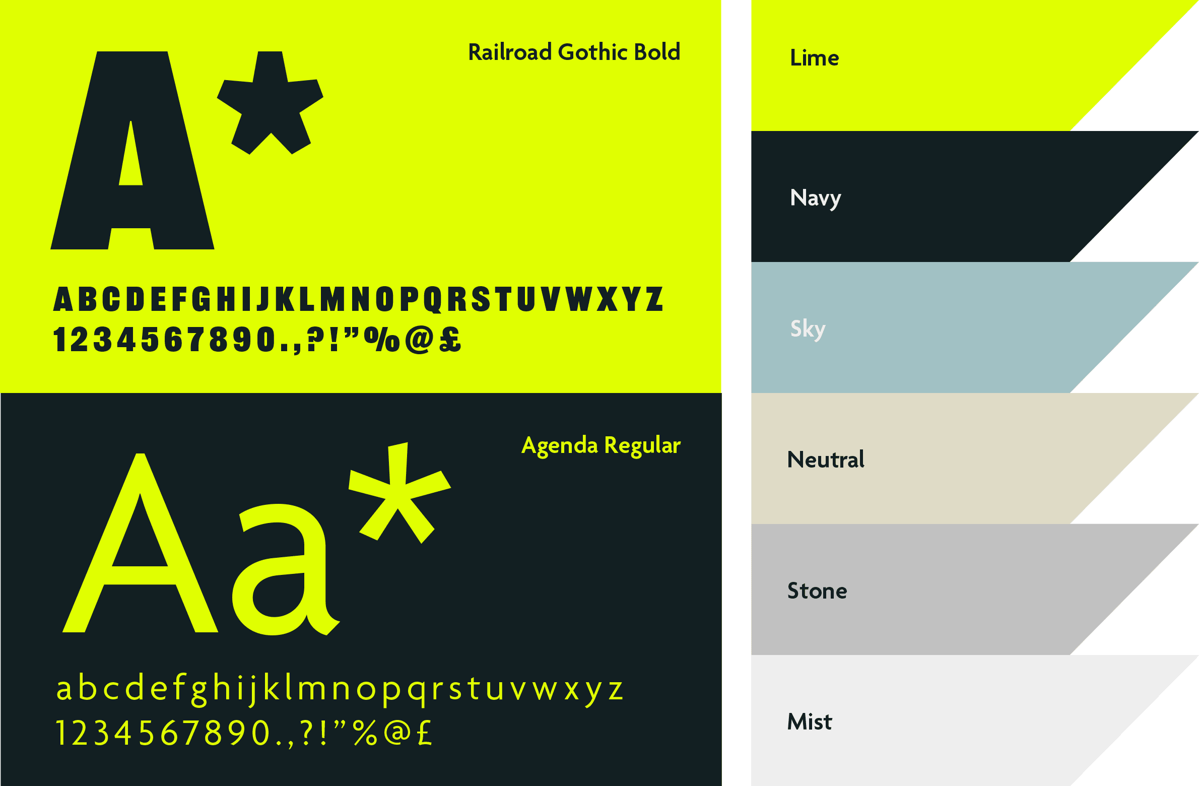 We chose a punchy in-your-face yellow/lime to contrast and bold typeface: Railroad gothic, an industrial style favourite for printers with their bold and big newspaper headlines. Impossible to ignore.