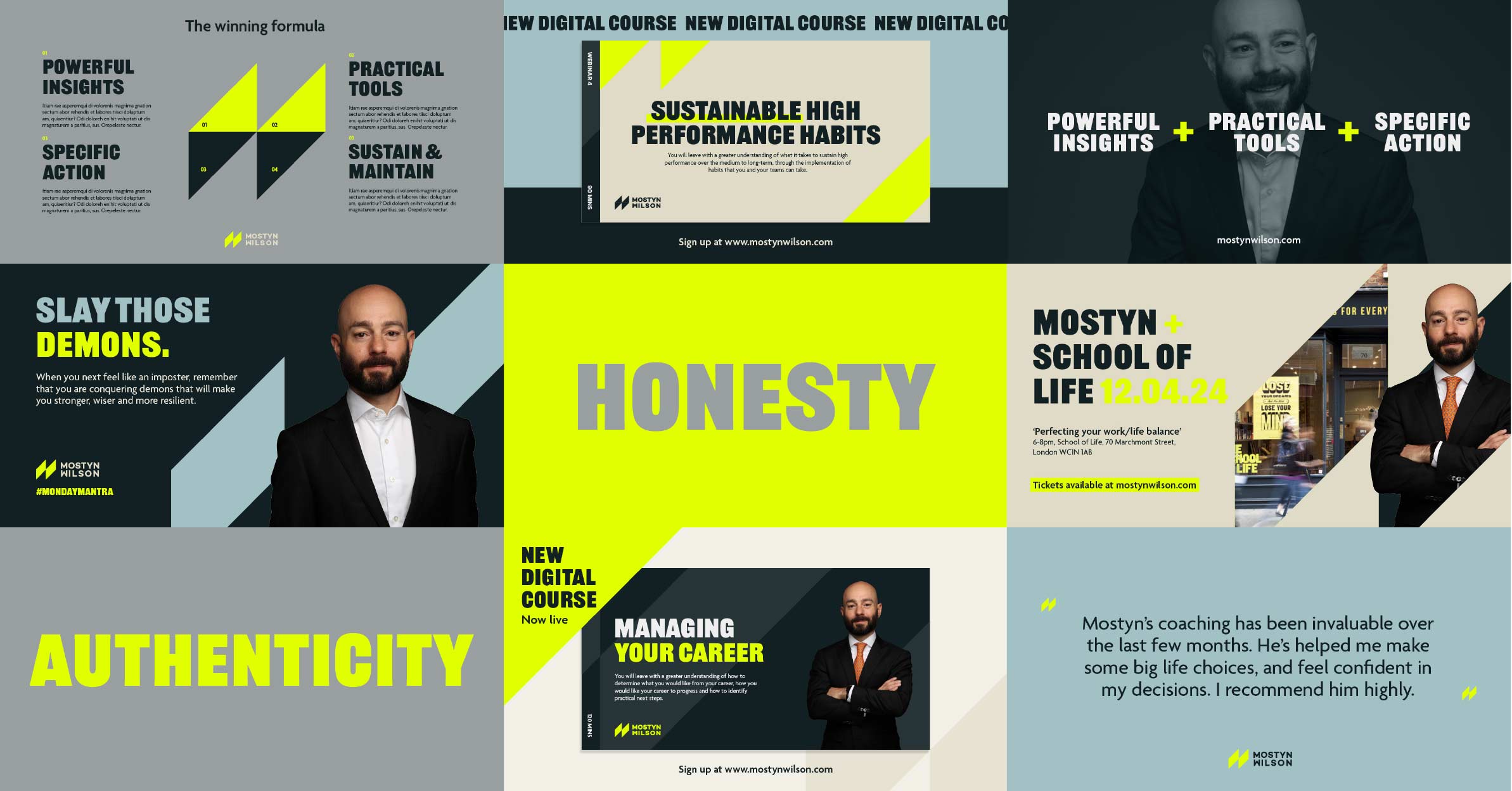 The brand had to encapsulate his expertise and credibility as a high performance coach but also highlight his engaging personality and strong values, striking the balance of professional, yet human.