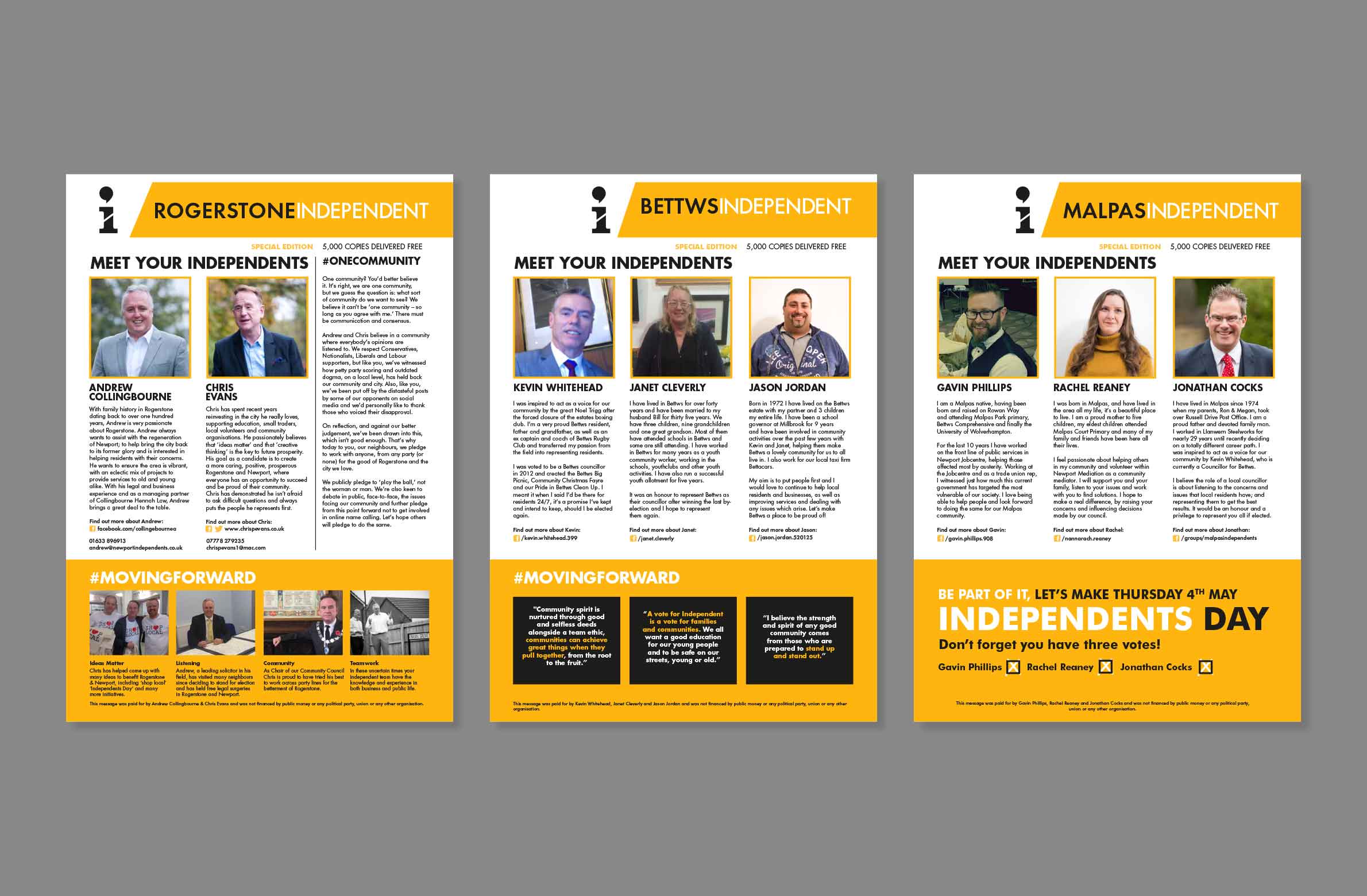 Working with 17 individuals over 6 wards across Newport, the challenge we faced was to keep the brand consistent whilst incorporating each members varying style, priorities and imagery.