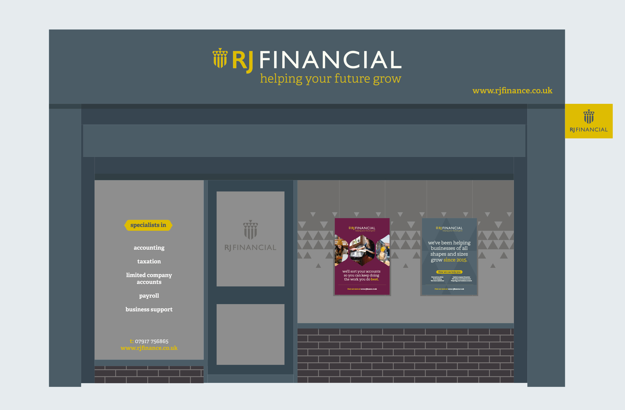 Accountancy experts RJ Financial approached Parade with an intent to invest in their marketing materials for an important upcoming event. After an initial consultation it was clear that they required a full branding exercise. Our goal was to create an identity that set a consistent visual language and showcased their business in a way that reflected their professionalism and credibility.