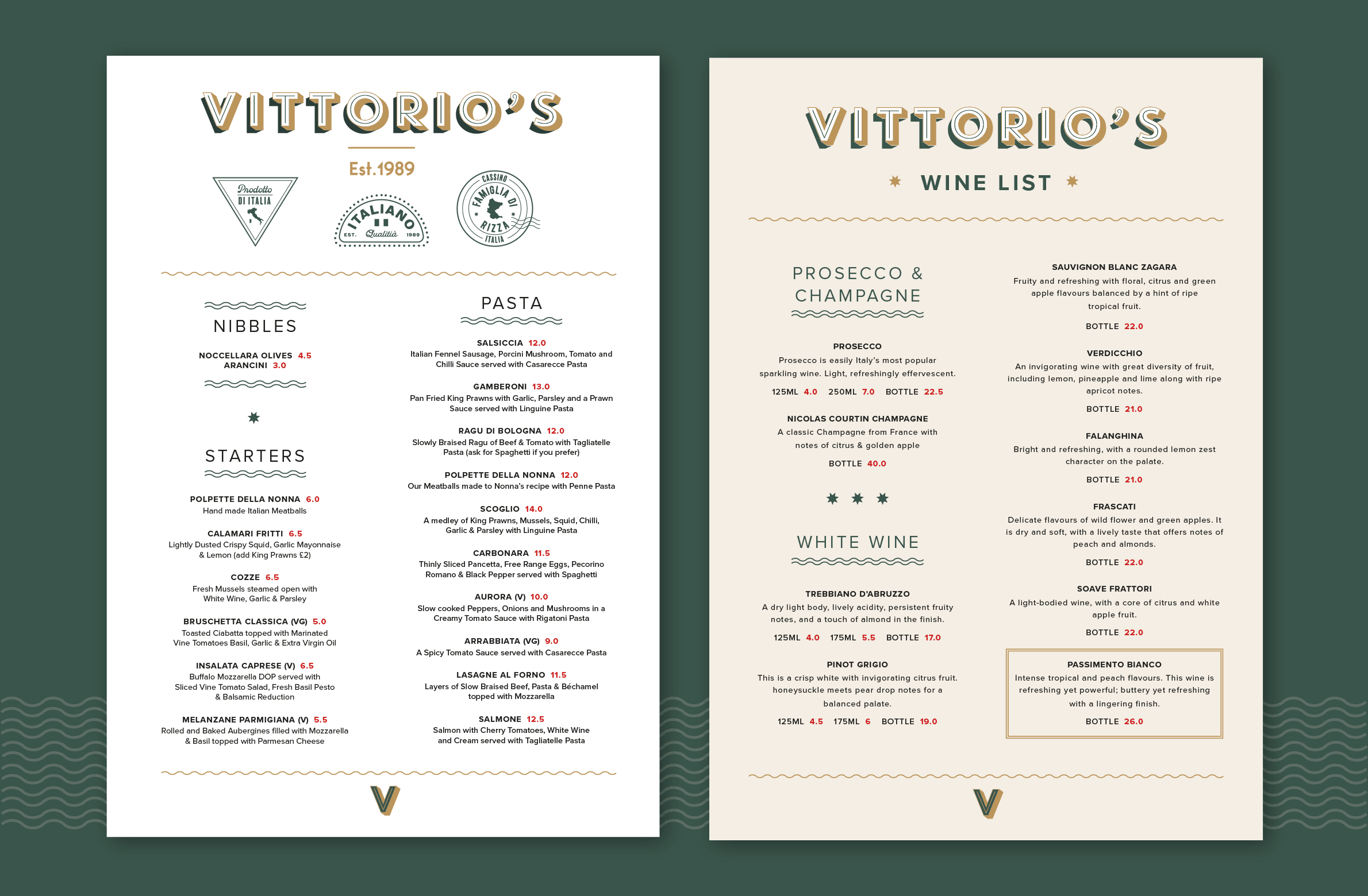 Opened in 1989 by Vittorio Rizza - Vittorio’s Restaurant has been providing an authentic Italian experience to the people of Newport for more than 30 years. Born from a passion for his native Italy and his love for good food and fine wine, Vittorio managed the restaurant with his wife Laura until 2011. The business has remained in the family ever since and the reins have now been passed to Vittorio’s grandaughter Rebecca and her husband Owen.